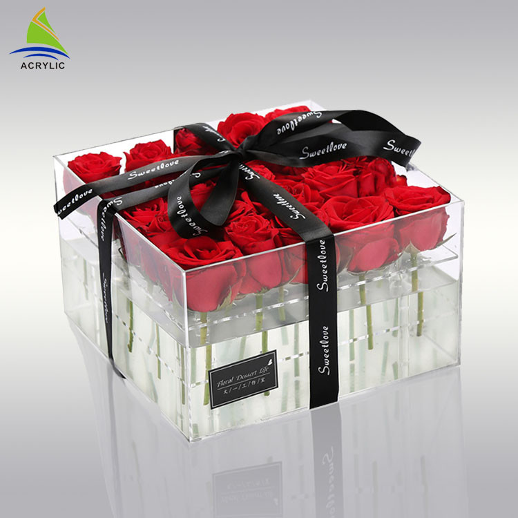 Boîte faite sur commande d'emballage de fleur acrylique acrylique claire de boîte de rangement de plexiglass pour préservé 25 roses